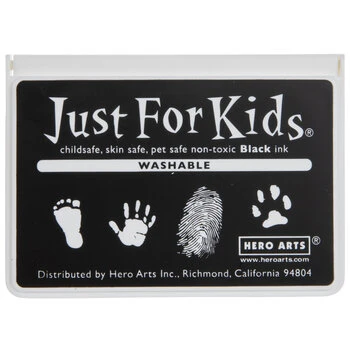 Give your stamping endeavors a more personal touch with Black Just For Kids Washable Ink Pad! With a non-toxic and skin-safe formula, this pad offers a black color and is perfect for endless stamp-related projects and crafts. Add fingerprints, handprints, or even paw prints to a variety of creations like handmade cards, scrapbooks, keepsakes, and more!