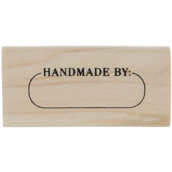 Make a great impression on your next paper crafting project using Handmade By Rubber Stamp! This rubber stamp is attached to a wood block, making it easy and fun to use. The stamp leaves the design of text that reads “Handmade” in blocky style above a blank oval, leaving space for you to fill in your name. Simply press it into your favorite ink pad for an easy way to improve your design!