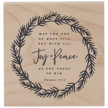 Turn your paper crafts into a delight with Romans 15:13 Rubber Stamp! This rubber stamp is attached to a wooden block and features a round, leafy wreath with a verse reminding us of the support of the Lord inside. Adorn your scrapbook page, letters, presents, and more with wonderful designs!