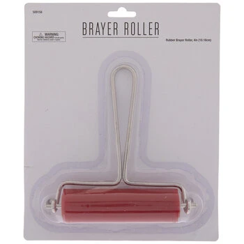Roll out your creative paper crafting ideas with Rubber Brayer Roller. This brayer is designed with a red rubber roller with a red plastic center and a silver-colored metal wire handle attachment.