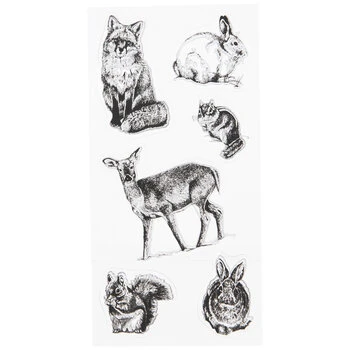 Put a little nature into your next craft project. Wildlife Clear Stamps feature a mixture of wildlife animals including a deer, a fox, rabbits, and squirrels. Dip the clear stamps in different colored ink to construct colorful creations!